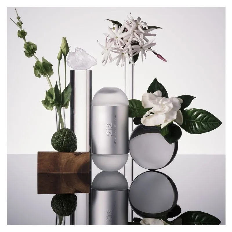 212 Eau de Toilette de Carolina Herrera é um aroma que permite a invasão de um novo mundo de sensações. Um conceito, o êxito da síntese, uma fragrância moderna e inovadora que é, ao mesmo tempo, muito feminina e elegante. Uma combinação de frescura, transparência e elegância que se adapta ao estilo da mulher moderna. As suas notas dominantes são florais, brilhantes e leves pétalas e hastes de flores como notas superiores, combinadas na perfeição com a riqueza sensual das notas base de sândalo e almíscar branco. A gardénia possui um toque metálico que transmite o modernismo desta fragrância urbana.