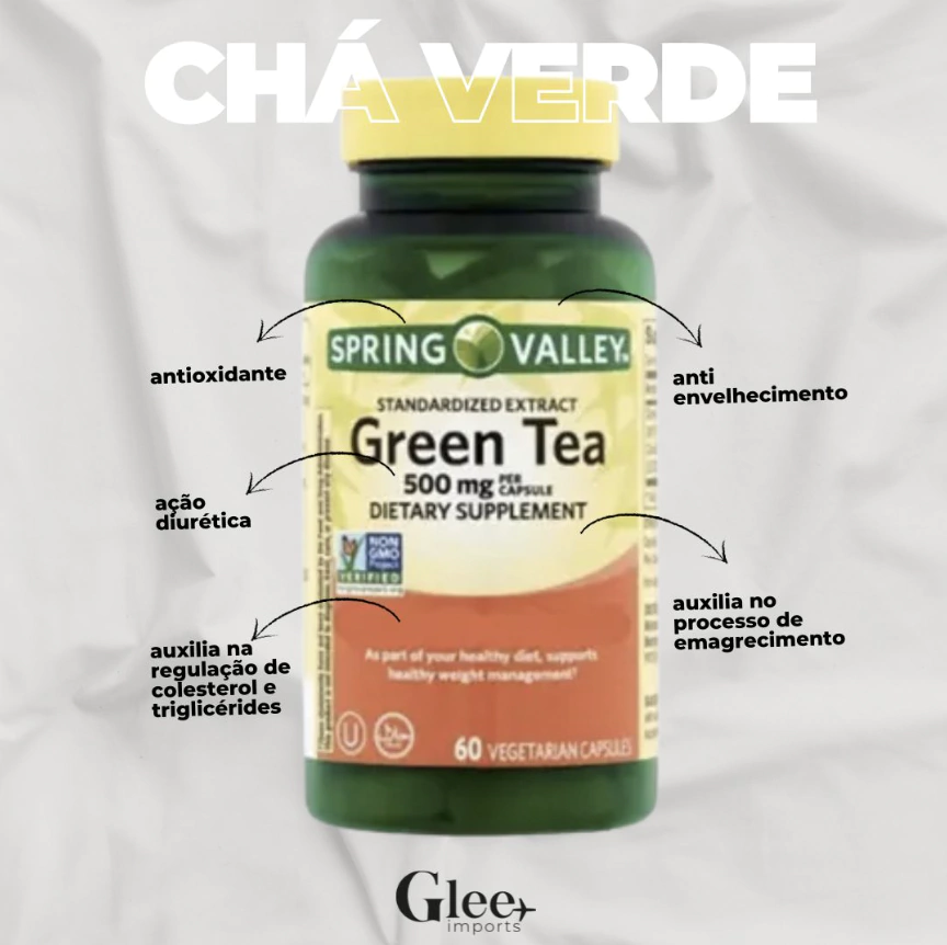 Chá verde em capsulas, veio para audar na ingestão com cápsulas vegetarianas de extrato de chá verde de Spring Valley são um suplemento dietético que fornece suporte antioxidante. Como parte de sua dieta saudável, ele apóia o controle de peso saudável. Cada porção contém 500 mg de extrato de chá verde e tem aproximadamente 15 mg de cafeína.