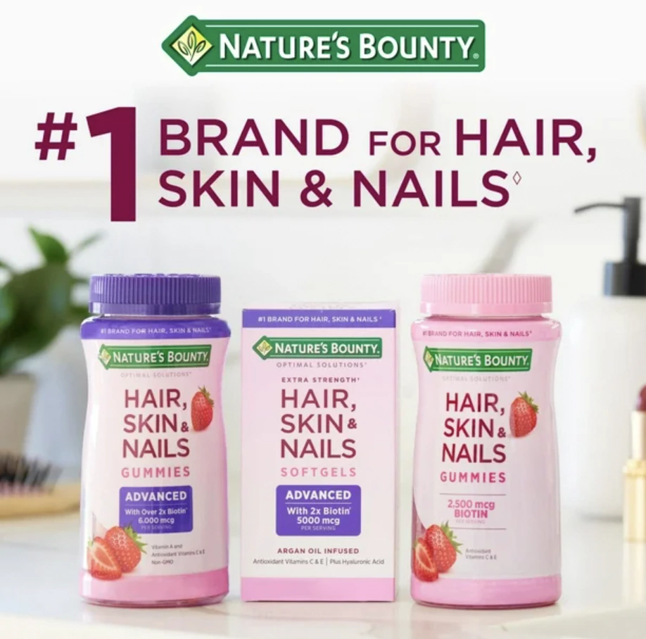 Nature's Bounty Advanced Hair Skin & Nails! Embalado com 2x a quantidade de biotina de nossa fórmula de goma líder para cabelo, pele e unhas, cada porção contém 6.000 mcg de biotina para manter cabelos bonitos, pele brilhante e unhas saudáveis. Com gummies deliciosas e com tecnologia avançada para cabelo, pele e unhas também contêm antioxidantes vitamina C e vitamina E