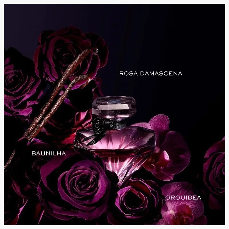 O Perfume Feminino La Nuit Trésor, de Lancôme, traz notas doces, que se tornam mais intensas em contato com o corpo, irradia o desejo absoluto como um tesouro da feminilidade. O tradicional Trésor, vem em sua versão La Nuit: o primeiro gourmand afrodisíaco da marca, por despertar a paixão irresistível entre aqueles que se amam. O frasco do La Nuit Trésor, perfume Lancôme, traz um diamante negro: uma bela joia noturna, proveniente da colisão de duas estrelas atraídas uma pela outra, que contrasta com o céu estrelado.