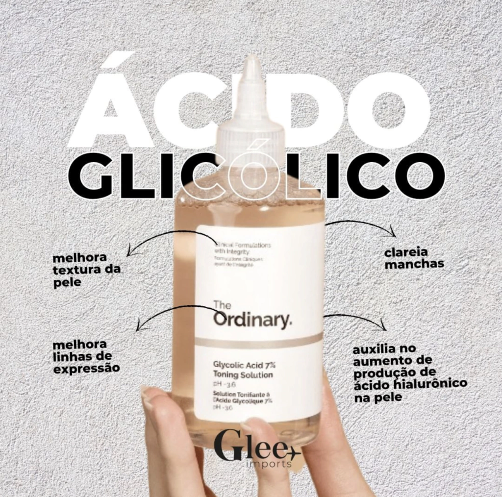 O produto mais vendido da The Ordinary, Tonico Ácido Glicólico 7% da The Ordinary oferece esfoliação suave para melhorar o brilho da pele e clareza visível. A fórmula também melhora a aparência da textura da pele com o uso contínuo. Ele é multifuncional renova, reduz os poros, uniformiza e suaviza o relevo da pele. Melhora a textura da pele, controla a oleosidade, desobstrui os poros.