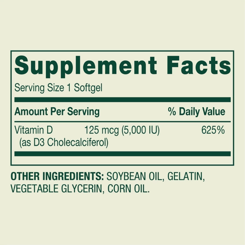 Vitamina D3 Spring Valley 5000iu - 100 tablets